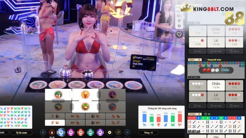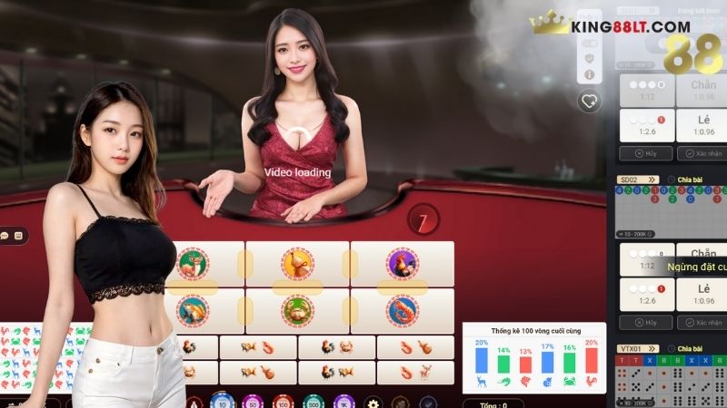 King88 cung cấp thống kê 20 ván gần nhất. Nếu một hình (ví dụ: Cua) xuất hiện dưới 15% trong 20 ván, tỷ lệ nổ ở ván tiếp theo lên đến 35% (theo nguyên lý xác suất bù trừ).